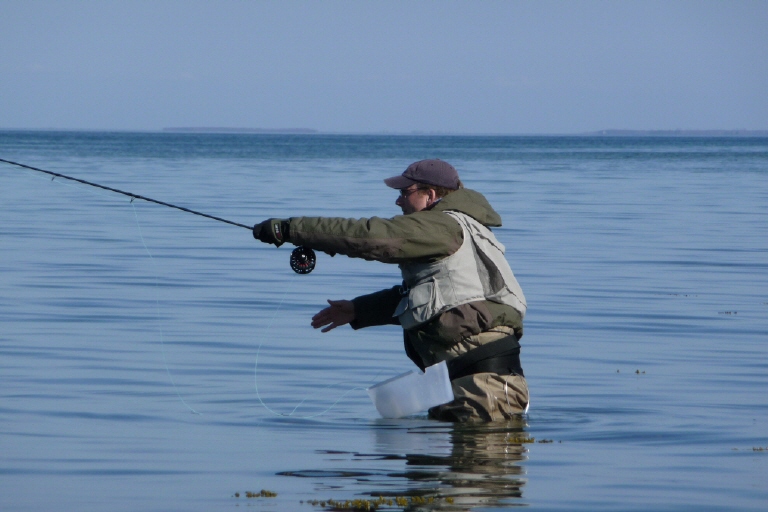 Es gab natürlich immer wieder Kontakt mit unseren Meerforellen, mehrere untermaßige Meerforellen gingen auf die Fliege und zwei von 44 cm und 43 cm konnten gelandet werden.